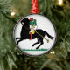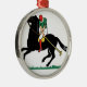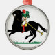 Kunst-Dekoentwurf eines schwarzen Pferds mit einem Polospieler, der es reitet, kleidete im Rot und im Grün an