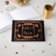 Ein minimalistisches, aber auffälliges geometrisches Deko-Design, das eine fette Textvorlage in der Mitte für Ihre benutzerdefinierte Formulierung hat. Das "Schwarz-Rose-Gold"-Design und die Schriftzeichen auf dem Rücken werden mit einer echten Folie hergestellt, die diesem Cover eine luxuriöse und zeitlose Eleganz verleiht. Ideal für eine Goldhochzeit in Schwarz und Rose, ein Hochzeitstag, eine Vintage Deko-Veranstaltung oder eine Gala-Business-Ansammlung "Große Gatsby", die "rauschende 20er Jahre". Lassen Sie die Erinnerungen mit diesem maßgeschneiderten und eleganten Sake verwöhnen. Die Folie und der Schriftart können in Silber oder schlichtes Gold und die Seiten in Schwarz oder Blindfarben geändert werden, wenn Sie mit Metallspitzen ein wenig luxuriösen Glammer zu den Seiten hinzufügen.