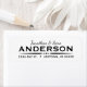 Dieses Adressetikett enthält handgeschriebenen Text zusammen mit einem serifenlosen Schriftart. Das Design ist mit einem Art Deko Stil Trenner betont.
