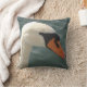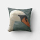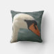 Der grosse Kopf eines weissen Schwans mit Wassertrofpen vor leicht gewelltem Dunkelgrauen Wasser ist das Design American MoJo Dekokissens.