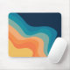 Geometrische Muster-Abbildung im Retrostil mit gelben, orangefarbenen, blauen, marineblauen und türkisfarbenen Streifen