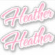 Heather Name in kursiven Skript-Schriftart in hübsch rosa x2. Zwei Kopien des Namens.
