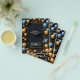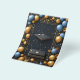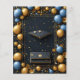 Ein luxuriöses Display mit schwarzen Gegenständen umgeben von festlichen goldenen und blauen Ballons mit Konfetti. Ideal für Feiern, Veranstaltungen oder für anspruchsvolle Veranstaltungen.