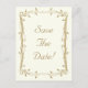 Schön und elegant antikes Gold Save the Date Hochzeitspostkartendesign mit dekorativen, leafy Schriftrollen rund um die Grenze. Das Design hat einen Elfenbeinhintergrund für ein elegantes Vintages Aussehen. Dieses Design kommt auch auf vielen anderen Papier-Produkte und auch Porto an den Anzug alle Ihre Hochzeit Set Bedürfnisse.