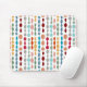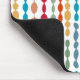 Dieses Mauspad hat ein modernes Design aus Kreisen und Ovalen, die in Retrofarben auf einem weißen Feld zusammengeschraubt sind.