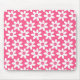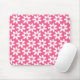 Hübscher Blumentapetenentwurf mit niedlichen kleinen Gänseblümchen-Blumen mit dem glücklichen Lächeln stellt Set gegen einen rosa Hintergrund gegenüber. Bild verfügbar auf verschiedenen Geschenken und Produkten.