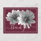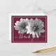 Atemberaubendes nah-up Schwarz-Weiß Foto von zwei dekorativen Dahlien vor weinfarbenem Hintergrund. Die Blume decken die Vorderseite dieser Postkarte ab, die als Dankeschön-Karte, Geburtstagskarte oder jede andere Karte Ihrer Wahl verwendet werden kann. Passen Sie es mit Ihrem Text und/oder Bildern an, um es zu einem einzigartigen Bild zu machen!