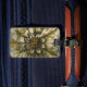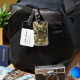 Dekorative Demaskrosette auf grauem Hintergrund Gepäckanhänger