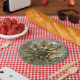 Dekorative Demaskrosette auf grauem Hintergrund Pappteller