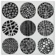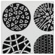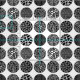 Ein nahtloses Muster mit einem wiederholenden Motiv, das von Hand neun gebildet wurde, verzierte Rundschreibenstellen jede mit einem unterschiedliche ursprüngliche Hand gezeichneten Entwurf. Dieses Muster kann weiter besonders angefertigt werden. Geschaffen mit einer vektorgraphik kann das Mustermotiv größer oder kleiner gemacht werden. Die Hintergrundfarbe kann auch geändert werden.