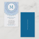 Lenken Sie Aufmerksamkeit auf ein Monogramm, indem Sie es mit dieser verwickelten Verzierung in den Tönen von Blauem und von Cyan-blauem umgeben. Alle Geschäftsinformationen drucken darunterliegend mit optionalem Textdrucken auf der Rückseite gegen Blau. Passend für viele Geschäftsarten. Verfügbar in den abwechselnden Farben mit zusammenpassenden Produkten.