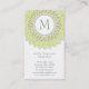 Lenken Sie Aufmerksamkeit auf ein Monogramm, indem Sie es mit dieser verwickelten Verzierung in den Tönen des Limonen und olivgrünen Grüns umgeben. Alle Geschäftsinformationen drucken darunterliegend mit optionalem Textdrucken auf der Rückseite gegen Grün. Passend für viele Geschäftsarten. Verfügbar in den abwechselnden Farben mit zusammenpassenden Produkten.