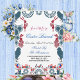 Eine elegante dekorative "Happy Oaster" Einladung für einen Osterbrunch. Die Illustration hat ein Blumenmotiv, Vögel, Bunnies und Osterküken. Die Rückseite hat ein passendes Muster. Der TEXT kann leicht mit Ihrer Wortwahl und Ihrem Schriftart personalisiert werden.