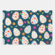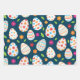 Es handelt sich um niedliche dekorative Ostereier, die mit Punkten, Herzen und Blume mit Blätter auf dunkelblauem Hintergrund gemustert sind. Es ist ein großartiges Papiertuch für Osterferien