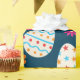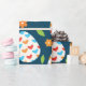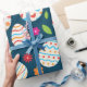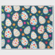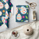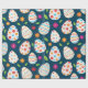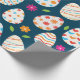 Feiern Sie Frühling und Ostern mit einem Verpackungspapier mit farbenprächtigen dekorativen Eiermustern mit Blume in Rosa, Orange und Grün auf dunkelblauem Hintergrund