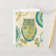 © Veronique Charron / Wilder Apple. Ein dekoratives Bild einer Eule und kreisförmige Muster und Designs. Der Hintergrund ist ein bräunliches Blumenmuster.