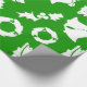 Das Verpackungspapier für die Weihnachtsfeier in der Gestaltung mit den Weihnachtsschmuck wie Weihnachtsbaum, Weihnachtsglocke, Weihnachtskranz und Weihnachtsdekor Blätter in Retrodrucken mit einer Vorstellung von grüner Farbe.