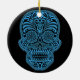 Dekorativer blauer und schwarzer Zuckerschädel Keramikornament