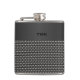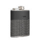 Stilvolle Flasche mit einer Grafik aus metallischem Metallgewebe, unten, oben mit einem schwarz gebürsteten Metalllook. Eine schwarze, dreitellige Monografie ist fertig, um sie zu personalisieren. Eine tolle Geschenkidee für jeden Typ und besonders gut als Hochzeitsgeschenk für Trauzeuge.