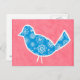 Dekorativer Vogel mit Mustern auf rosa Hintergrund Postkarte