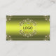 Mit dieser exquisiten Visitenkartenvorlage können Sie Eleganz und Luxus zeigen. Das Design besticht durch glamouröse, verzierte, goldene Dekorationselemente in der Mitte und in den Ecken, die in den gelben und olivgrün-Hintergründen schimmern. Passen Sie diese Visitenkarte einfach an Ihre Marke, Ihr Logo, Ihren qr-Code und Ihr (Mitarbeiter-)Foto an. Alles, was Sie sehen, ist Imitat-Folie, aber ein sehr hochwertiges Druckdesign. ♡ von YOUR FAVORITE - entwirft :-) Moderne und berufliche Geschäftsausstattung. ♡ wünsche Ihnen viel Spaß mit diesem Artikel. ♡ www.zazzle.com/store/your_favorite ♡ www.zazzle.com/store/favorite_markeplies ♡