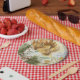 Dekoratives Fresco-Design mit Globe-Blume Pappteller