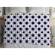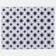 Handtücher und ein Waschlappen weisen ein geometrisches Muster mit marineblauen Sternen und Kreisen auf weißem Hintergrund auf, was einen modernen und anspruchsvollen Look verleiht.