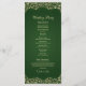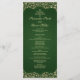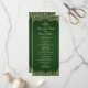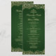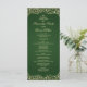 Dieses Hochzeitsprogramm strahlt zeitlose Eleganz aus, mit einem reichen grünen Hintergrund gepaart mit verzierten goldenen Damast Details. Die Vorderseite präsentiert das komplette Hochzeitsprogramm, gerahmt durch die aufwändigen Goldverzierungen auf einem tiefen, grünen Paneel, und schafft so einen luxuriösen und regelmäßigen Look. Die Namen der Paare werden in einem goldgelben, kreisförmigen Damast hervorgehoben, der sich perfekt in Raffinesse und Feier verwandelt. Die Kombination aus Grün und Gold bietet einen klassischen, aber auffallenden Stil, der sich ideal für feierliche Hochzeiten eignet..02