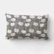 Dekoratives Kissen mit modernem minimalistischem Design, Muster mit Kätzchengesichtern, Blume, Gras auf grauem Hintergrund.