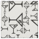 Ein Vintages, schwarz-weißes Martini-Muster mit Martini-Getränken illustriert in einem schwarzen Retro-Stil mit weißem Hintergrund.