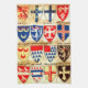 Wappen in den multi Farben. Vintage Malerei mit einem Bild einer frühen Rolle der Arme, die der Gesellschaft der Altertumsforscher von London mit verschiedenem Wappen in einem mehrfarbigen Muster gehören.