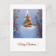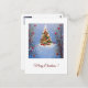 Ein schneebedeckter, dekorierter Weihnachtsbaum.