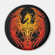 Dieses rote und gelbe Phönix-Design ist mit fließenden Stammes-Wirbel und Punktmustern dekoriert. Die symmetrischen Flügel breiten sich von jeder Seite des Musters aus, während der Schwanz in der Mitte abfällt und einen Punkt an der Unterseite bildet. Die fetten Linien werden hervorgehoben, wodurch ein subtiler Glanz auf der Oberfläche entsteht. Dieser aggressive und dennoch elegante Phönix sitzt auf einem reinen schwarzen Hintergrund, der ein schönes und stilvolles Magnetdesign schafft.