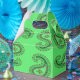 Ein faszinierendes und faszinierendes, dekoratives Paisley-Muster, das in einen üppig grünen Hintergrund gewoben ist und eine Aura der Eleganz und kulturellen Raffinesse ausstrahlt. Der auffallende Kontrast zwischen den aufwändigen paisley-Motiven und der tiefgrünen Kulisse schafft ein visuell faszinierendes Design, das eine Touch zeitlosen Charmes schafft.