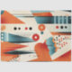 Das Bild ist ein abstraktes Kunstwerk mit einer Vielzahl geometrischer Formen und Muster. Die Farbpalette umfasst orange, blau, schwarz und weiß. Die Komposition besteht aus scharfen Dreiecken, Kreisen, Punkten und Linien, die dynamisch und optisch ansprechend angeordnet sind. Das Zusammenspiel von Farben und Formen schafft ein Gefühl von Bewegung und Tiefe, das das Bild interessant und visuell stimulierend macht: abstrakte geometrische Kunstwerke, bunte geometrische Formen, orange und blau abstrakte Kunst, dynamische geometrische Muster, visuell einnehmende Kunst, moderne abstrakte Komposition, künstlerisch geometrisches Design, lebendiges abstraktes Bild.