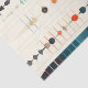 Das Bild ist ein abstraktes Kunstwerk mit einer Vielzahl geometrischer Formen und Muster, die vertikal angeordnet sind. Die Formen umfassen Kreise, Dreiecke, Diamanten und Linien in verschiedenen Farben wie Blau, Orange und Beige. Die Muster sind komplex und symmetrisch und schaffen ein visuell ansprechendes und komplexes Design: abstrakte geometrische Kunstwerke, farbenfrohe geometrische Formen, komplizierte symmetrische Muster, modernes abstraktes Design, lebendige geometrische Kunst, optisch ansprechende abstrakte, künstlerische geometrische Komposition.