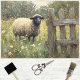Schönes decouptenes Papiertaschentuch mit einem digitalen Ölgemälde von Schafen auf einer Frühjahrswiese, umgeben von lebhaften Pflanzen und Blüten, ideal für eine ruhige, rustikale Touch von Kunsthandwerk und Geschenkverpackung.