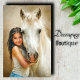 Feiern Sie die sanfte Schönheit dieses weißen Pferdes und die liebevolle Umarmung eines jungen Mädchens mit diesem entkoppelten Gewebe Papier-Design. Dieses großformatige Papier eignet sich ideal für Möbelmacher, rustikale Heimwerkerprojekte und Reitsportler. Freuen Sie sich auf Wärme, Unschuld und den Charme der Landschaft.