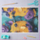 Dieses nah-up strukturierte Bild zeigt zwei Vögel, möglicherweise Eulen, die sich gegenüberstehen. Die Vögel werden mit dicken, wirbelnden Strichen mit lebhaften gelben und lila Farben dargestellt, die ein impressionistisches Gefühl schaffen. Ihre Augen sind detailliert und realistisch, im Gegensatz zur abstrakten Darstellung ihrer Federn. Der Hintergrund ist in aquamarin-blauen Farbtönen gehalten, die die gelben und lila Farbtöne ergänzen. Diese dynamische Verwendung von Farbe und Textur macht das Kunstwerk faszinierend und einzigartig.
