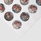 Die Kreise sind etwa 4,5 cm rund. Das Bild zeigt eine Figur, die in einem Santa Claus-Outfit gekleidet ist und auf einem verzierten, Vintagen Sessel sitzt. Das Gesicht der Figur wird von einem verschwommenen Quadrat verschleiert. Das Outfit des Weihnachtsmanns umfasst einen roten Hut mit weißem Pom, einen langen weißen Bart, einen weißen Mantel, weiße Hosen mit Pelzwerk und schwarze Stiefel. Die Figur hält eine Tasse und Untertasse. Rechts neben der Figur befindet sich ein kleiner Tisch mit Teekanne, Tasse und Pinecon. Das Ambiente ist rustikal und antike, mit gedämpften Farben und einem strukturierten Hintergrund. Das Bild ist interessant, weil es traditionelle Weihnachtsbilder mit einer Vintagen, fast sepiatfarbenen Ästhetik verbindet und eine nostalgische und künstlerische Darstellung des Weihnachtsmannes schafft. Santa Claus Outfit, Vintager Sessel, verzierter Stuhl, roter Hut mit Pom-Pom, langer weißer Bart, weißer Mantel mit Pelztrim, schwarze Stiefel, Haltetasse und Untertasse, rustikales Ambiente, antikes Ambiente, gedämpfte Farben, texturierter Hintergrund, Teekanne und Tasse, Weihnachtsbilder, nostalgische Santa, künstlerische Repräsentation, RHDRepräsentation, RHD-Zeichen von 2chattychicks. Das Bild zeigt Herrn und Frau Santa Claus, die eng miteinander stehend sind und sich freundlich anlächeln. Herr Santa Claus ist in seinem traditionellen roten Anzug mit weißem Pelzwerk, einem schwarzen Gürtel und einem roten Hut mit weißem Pom gekleidet. Frau Santa Claus trägt ein rotes Kleid mit weißen Spitzen-Akzenten und einem passenden roten Hut mit einem weißen Band. Im Hintergrund herrscht ein gemütliches Ambiente mit einem geschmückten Weihnachtsbaum, Geschenken und Strümpfen, die an einem Kamin hängen, was das festliche Ambiente noch verstärkt. Die Gesamtszene erfasst die Freude und Wärme der Ferienzeit durch den liebevollen Austausch zwischen Herrn und Frau Claus. Santa Claus, Santa Claus, das Santa Claus Ehepaar lächelnd, Festtagsszene, Weihnachtsbaum, dekorierte Geschenke, Strümpfe mit Kamin, traditioneller Weihnachtsmann, Rotes Kleid mit Spitze, Ferien Zuneigung, gemütliche Inneneinrichtung, festliche Atmosphäre, RHDesign von 2chattychicks. Kleiner Kreis von Weihnachtsdesigns