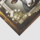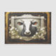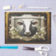 Rustikales Landhaus primitive Kuh in einem Fensterrahmen mit Blume dekoupage Gewebe Papier Primitive Malerei mit einer Kuh, im Stil der primitivistischen Kunst, Illustration Portrait, und Bauernhaus.