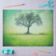 Schönes Bild eines Einzelbaumes mit grünem Hintergrund und einem schönen Skript-Element Das perfekte Bild für Ihr decoupage Projekt.