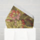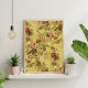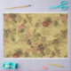 Ein Vintages Stoffmuster mit einer skurrilen Anordnung von Blumenstrauß. Das Design präsentiert große rote, rosafarbene und gelbe Garnelen, ergänzt durch mittelgroße lila Blüten und zarte kleine rosa Blume. Dekoutenpapier