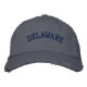 Ein gestresstes Chino Twill Cap bestickt mit dem (anpassbaren) Text Delaware. Wählen Sie Hut und Textfarbe und Stil Ihrer Wahl aus.