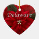 Eine Grafik einer roten Poinsettia auf einem Delaware-Herzschmuck. Das Ornament hat Vorlagen für Ihren Text.Nachricht: Der 3D-Effekt ist das Bild-das Ornament ist flach. ©2013charmainepaulson.