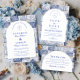 Ein zeitloses blau-weißes Design, inspiriert von klassischem Delfter Porzellan und französischen Toile-Mustern. Der Patchwork-Fliesenrand kombiniert zarte Blumen, Streifen und ornamentale Motive, die an europäische Vintage-Keramik erinnern. Ein weiches, gebogenes Paneel in der Mitte hält das Layout elegant und raffiniert und lässt die Details des Porzellan-inspirierten Musters die Feier schön umrahmen. Perfekt für Paare, die eine anspruchsvolle blau-weiße Hochzeit mit traditionellem europäischen Charme planen.