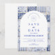 Delft Blaues Patchwork-Toile-Hochzeit Save The Date