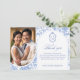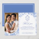 Delft Blue Floral Chinoiserie Monogram Wedding Dankeskarte