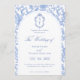 Delft Blue Floral Chinoiserie Monogram Wedding Einladung