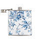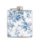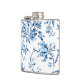 Elegant gezeichnet klassisch und gepflegt mit zartem Delft blauen Weinbergen, Blume und geschwungenen Ästen auf weißem Hintergrund.